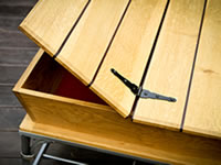 Quality and craftsmanship.... We use solid hardwood for our furniture tops and faces, typically finished with a hand-rubbed oil finish. We do this so that, if an accident happens, the problem can be fixed by simply sanding down through the problem area and reapplying the oil finish. Try doing that on a veneer top; the repair often requires replacing the whole piece.